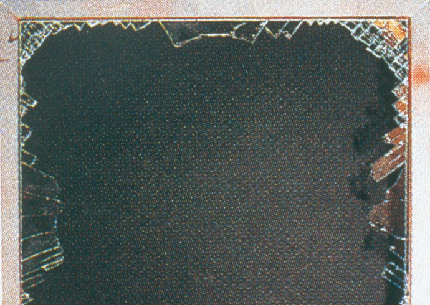 地震時の「はめごろし窓」を想定したフレーム変位による飛散防止実験。建設省(現 国土交通省)建築研究所の受託による「はめごろし窓」を想定したフレーム変位による飛散状態の実験。